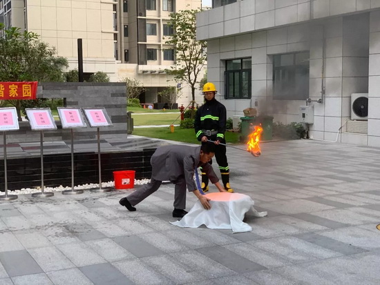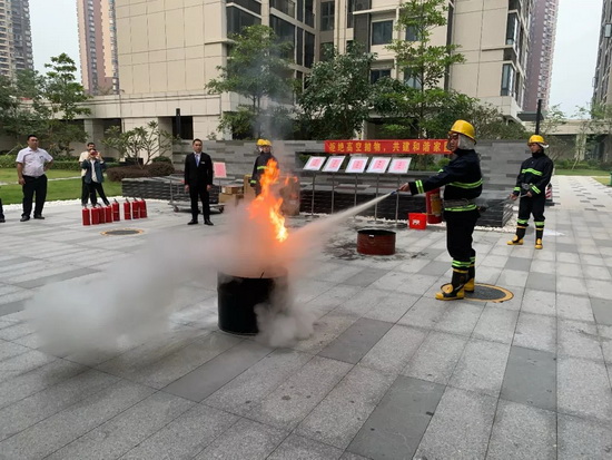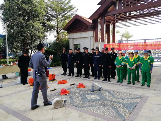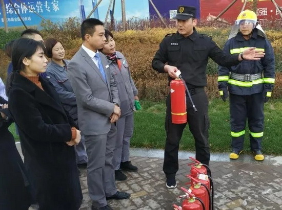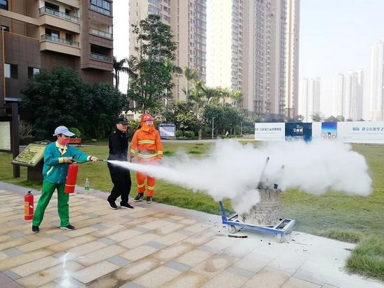 11月20日,吉祥服务广州宝能文化广场举行消防演练,突出讲解了不同火种的扑灭办法。