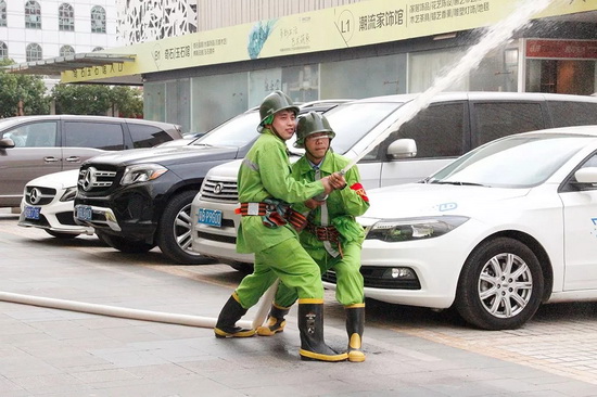 除了灭火器,水带也是对付火灾的利器之一。生活中与水带相关的训练往往较少,吉祥服务显然意识到了多掌握一份救灾方法的重要性,此次演练着重培训了抛接水带这一环节,大家齐心协力合作救灾大大提高了办事效率。