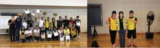 吉祥勇士队球馆合照 上午的活动是 “谁与争锋”篮球挑战赛。全员被分为三个小组完成了团队的组建后,各小组都为本小组取了一个响亮的名称和一个气贯长虹
