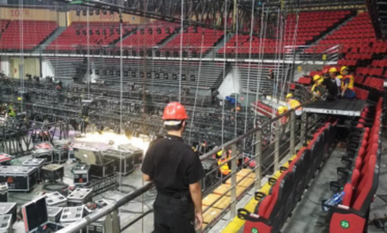保障安全生产是重中之中。自10月8日施工方进场舞台搭建以来,要求严谨认真负责地监管施工现场的工作即时展开,如安管部专人24小时现场监管、工程部加强巡查、安全经理每天培训施工工人及现场不定时巡查管控等。