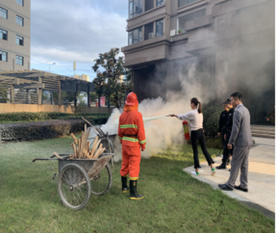 本次消防演习分为初起火灾应急处置演练、消防安全基础知识宣讲、灭火器材使用操作体验三个环节。为了更专业地向全体业户宣传消防安全知识,吉祥服务赣州太古城物业服务中心还特意邀请了辖区派出所所长吴剑及社区服务中心相关领导前来观摩指导。在活动中,除了宣传遇到火情时怎样自救及灭火等基础知识外,还积极向到场人员宣传预防火灾的重要性,提高对消防隐患的警惕及重视。