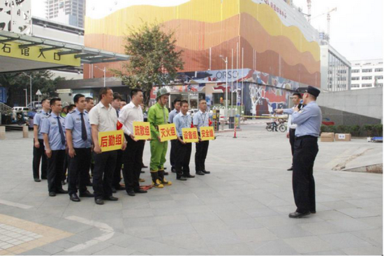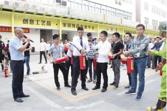为了使消防安全应急演练工作顺利展开,笋岗工艺城提前筹备,精细分工,将整个演练分为灭火组、设备组、疏散组、后勤组、安全组、指挥处六个部分,各司其职,整装待命;为了将消防安全宣导工作360度覆盖,笋岗工艺城组织了在场商户、集团工作人员约200余人参与。