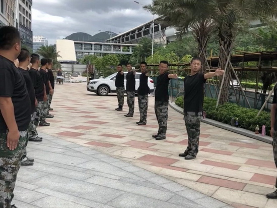 环球金融中心服务中心开展军事训练,提高团队精神风貌。