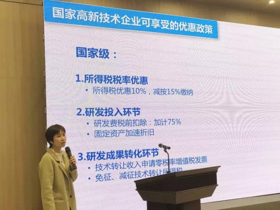 本次政策宣讲会主要对企业认定国高后可享受的优惠政策进行宣贯,并对国高申报要点、申报步骤、注意事项等进行详细解读。
