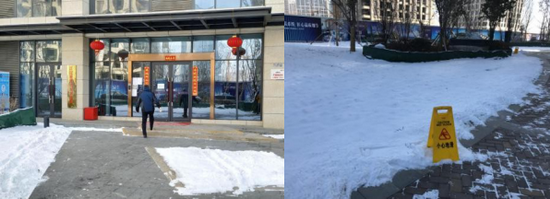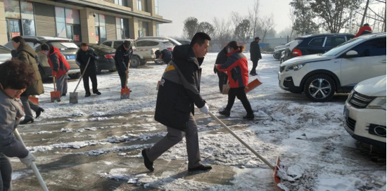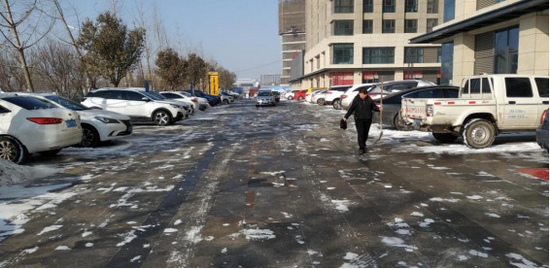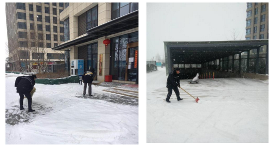 其实,早在大雪将来之时,吉祥服务集团石家庄宝能中心的工作人员就早早准备了铲雪工具、防滑垫等多种工具,2 月 15 日更是全员出动, 对停车场、主干道、单元门出入口前进行了全覆盖清扫,并及时提醒过往行人小心慢行,防止滑倒。