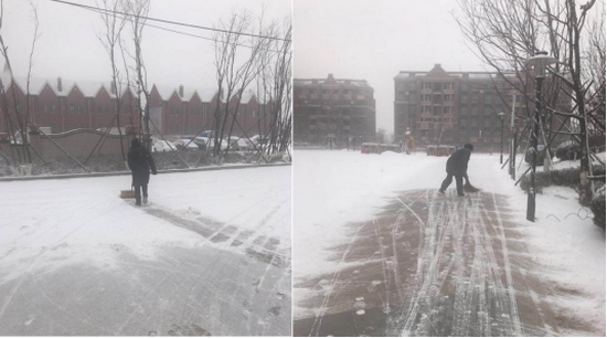 2 月 16 日早上 8 点,吉祥服务集团沈阳水岸康城物业服务中心组织动员所有员工积极清扫积雪,保障出行畅通。整个扫雪场面热火朝天,有的拿着扫帚,有的拿着铁铲,你扫、我铲、他推,大家互相配合,互相替换,不一会儿,原本满地的积雪、湿滑的路面逐渐变得干净畅通,为广大业主出行提供了安全保障。虽然室外温度很低,但大家劳动的热情和团结的力量给这个冬日增加了温暖。大家辛勤的劳动成果,也得到了广大业主的认可与表扬。