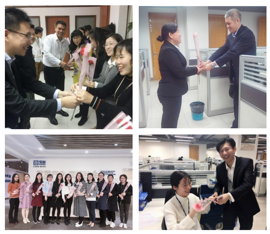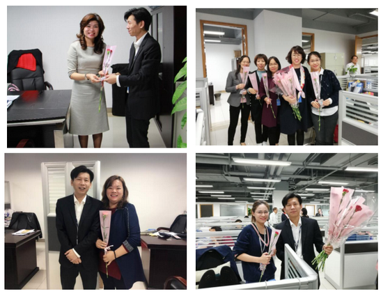员工一一送上温馨的节日祝福,有妍丽芬芳的鲜花及电影券作为节日礼物。