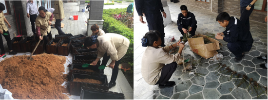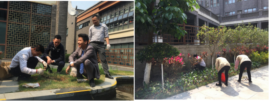 种植当日万里晴空,春风十里。在经过专业园林技师对栽种玫瑰花苗的方法进行详细讲解、培训后,大家跃跃欲试,两三人一组,配合默契,或扶苗培土、或挥锹铲土、或浇水润根,整个花苗栽种工序在忙碌中显得一丝不苟,一起为岭南风情街的未来风景洒下汗水。