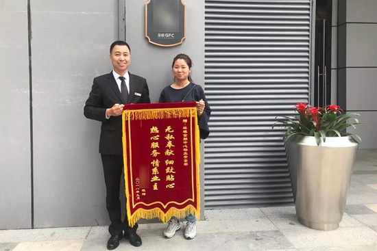 事后,业主买来2箱饮料欲表达谢意,被王喜超婉拒了,在别人看来这是招惹麻烦的事在他看来却是分内事。最终,业主选择了送来一面代表物业人荣誉的锦旗。