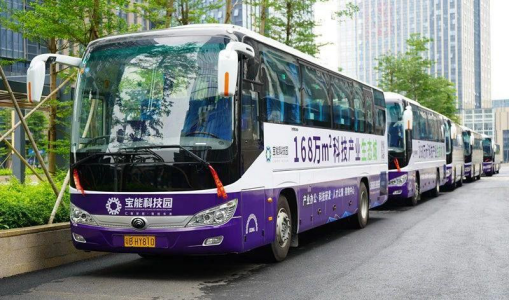 2019 年 5 月 5 日,宝能科技园六辆崭新的通勤大巴车正式发车起航,为园区进一步提升服务品质,迈出坚实步伐。