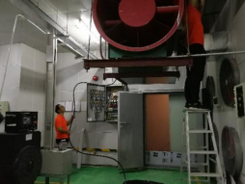 (工程人员正在对设备房进行整改)在政府部门专业人员的指导下,韶关创航项目展示出了吉祥服务员工的综合素质及高效的执行力,特别是 5 月 10 日晚上 10:00 接韶关市消防大队的通知,设备房需要进一步整改及提升,在园区整体消防系统暂未移交韶关创航的情况下,深夜至市区找所需的材料,并于凌晨 5 点实现了机组联动,达到检查要求。