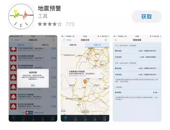 在手机上下载成都高新减灾研究所研发的“地震预警”APP,地震来临时,会发出警报声音,和广播警报相同,给我们留下宝贵的自救反应时间。