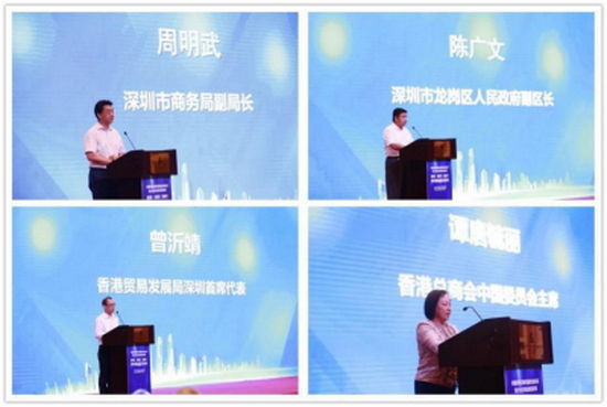 交流会现场会议首先由深圳市商务局副局长周明武、龙岗区人民政府副区长陈广文、香港贸易发展局深圳首席代表曾沂靖、香港总商会中国委员会主席谭唐毓丽等领导嘉宾致辞,深港两地在服务贸易产业融合发展方面有着得天独厚的优势,双方可以进一步拓展合作深度与宽度、优势互补,共同把大湾区的经济服务体系做得更好。