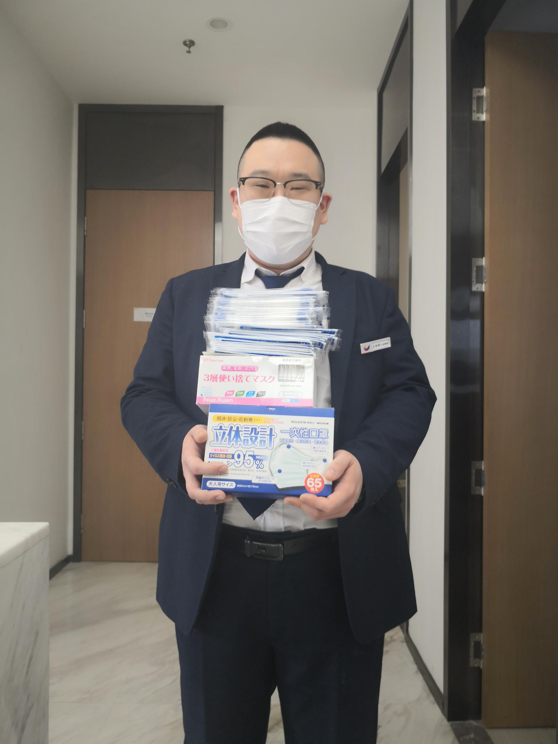 王冬刚是吉祥服务集团的一名客服,在项目一线口罩紧张难求的情况下,他将家里库存的165个口罩主动捐赠出来,给春节值班的同事使用。