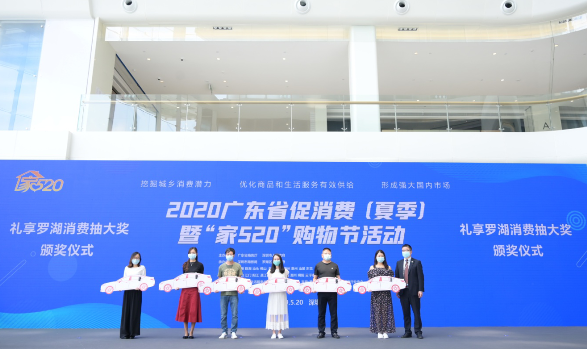 为全面推进深圳经济复苏,深圳各区都开展了重磅促消费活动,尤其是罗湖区,不仅豪掷近亿消费券,并由宝能·第一空间助阵,推出重磅消费大奖。购物节活动现场,五一小长假期间诞生的6位幸运“锦鲤”现身宝能·第一空间,领取汽车大奖。