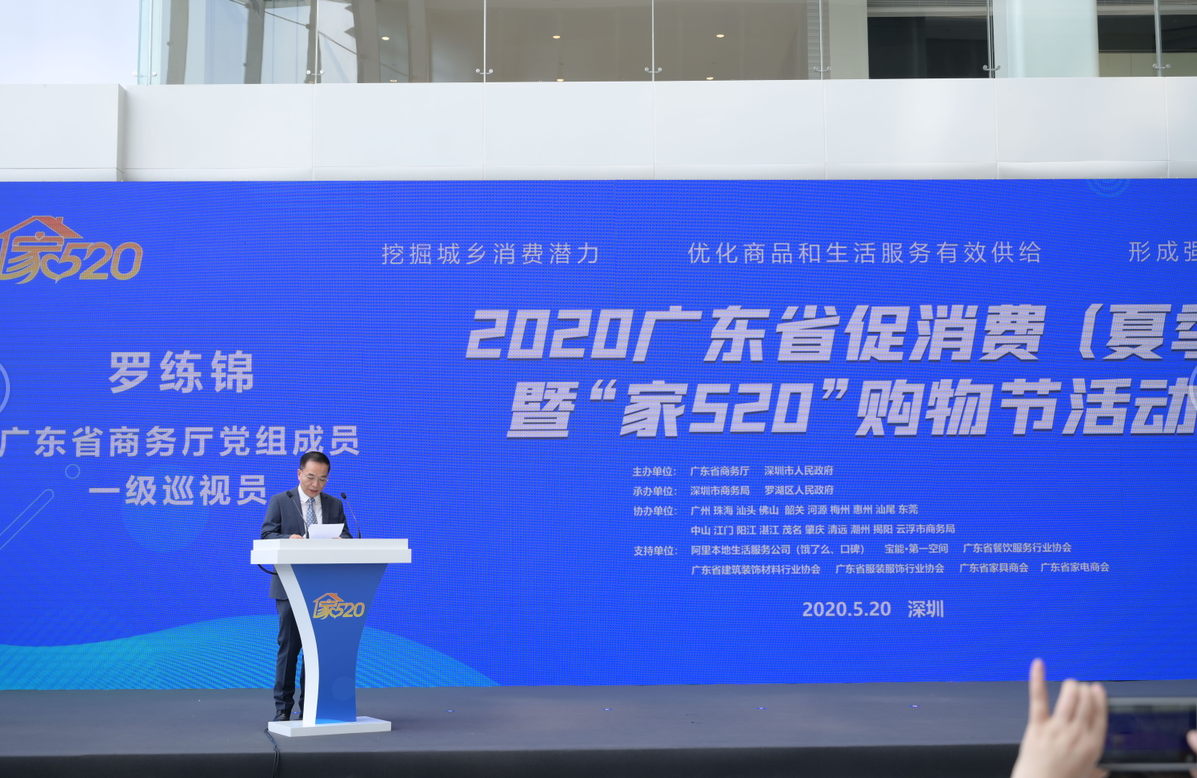 5月20日上午,2020广东省促消费(夏季)暨“家520”购物节活动主会场在宝能·第一空间隆重启幕,活动由广东省商务厅、深圳市人民政府主办,深圳市商务局、深圳市罗湖区人民政府承办,20个地级以上市商务局协办,省市行业商协会、阿里本地生活、宝能·第一空间共同参与。