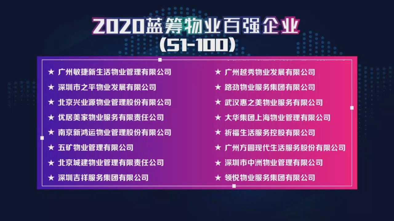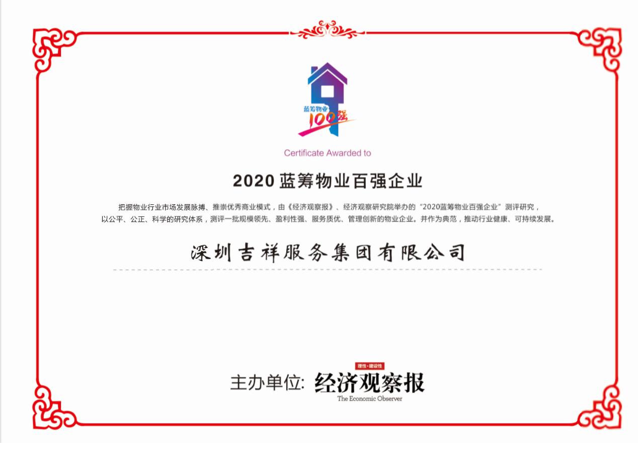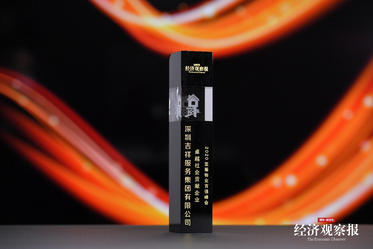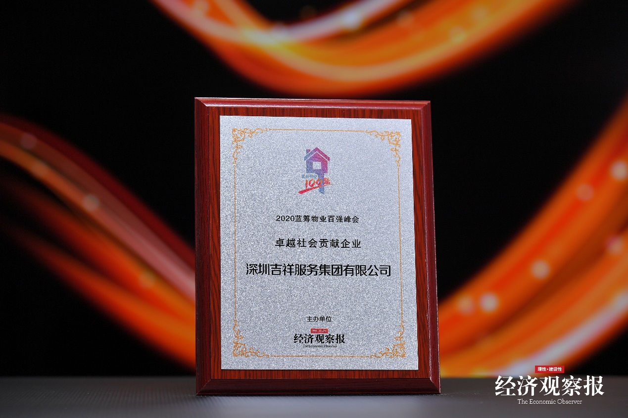 8月12日,由《经济观察报》发起的第六届2020蓝筹物业百强峰会在新浪微博以云端形式举办,会上发布了2020物业百强企业榜单,吉祥服务集团凭借综合实力、发展潜力及稳健的业务结构等荣获“2020蓝筹物业百强企业”、“卓越社会贡献企业”荣誉称号。