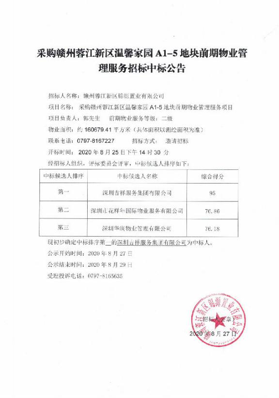 日前,吉祥服务集团成功中标赣州温馨家园A1-5地块物业管理项目。这是吉祥服务集团首个市场化战略外拓项目,意味着吉祥服务综合实力得到市场的认可,也标志着集团市场化战略迈出了重要一步。