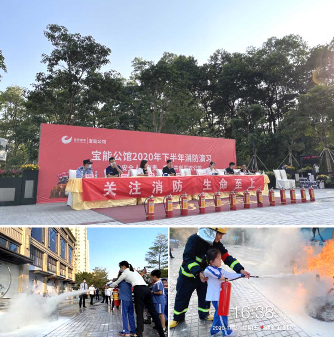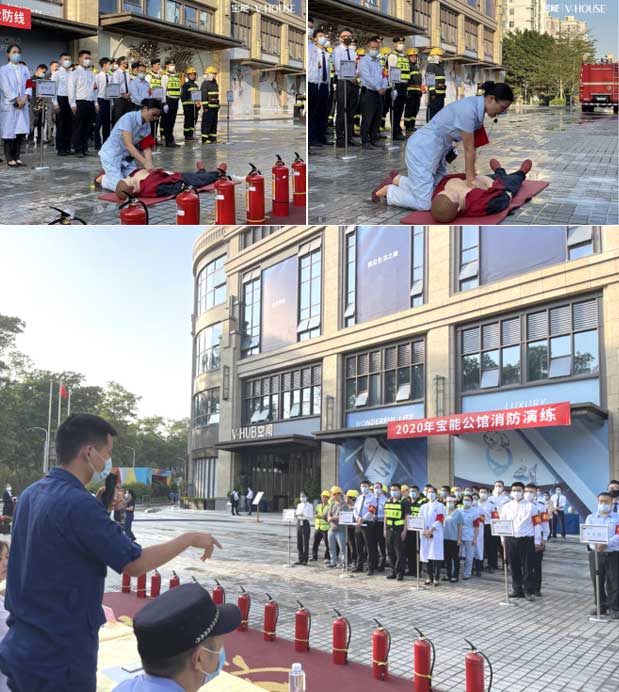 其中,深圳宝能公馆、深圳幸福之家、深圳金利通金融中心、广州国际演艺中心、广州前海人寿医院、广州宝能文化广场、合肥宝能城一期、云浮宝能城市广场等项目在消防演练周邀请了政府街道、消防、应急、公安等部门联动开展消防应急演练,提升社区消防联动应急能力。