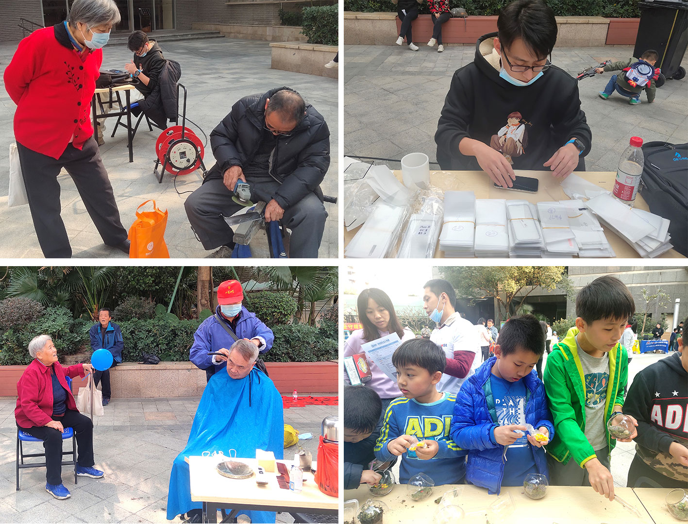 除此之外,物业服务中心还推出了,便民磨刀、便民理发,免费手机贴膜、手工盆栽体验等活动,将欢乐和关怀送到了千家万户