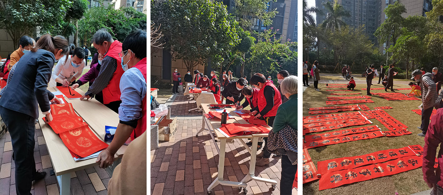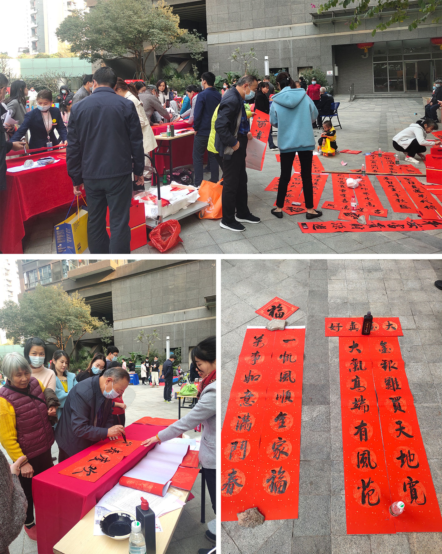 日前,在深圳悦澜山项目,“翰墨飘香”盛平社区义写春联活动,吸引了一大批业户到场。
